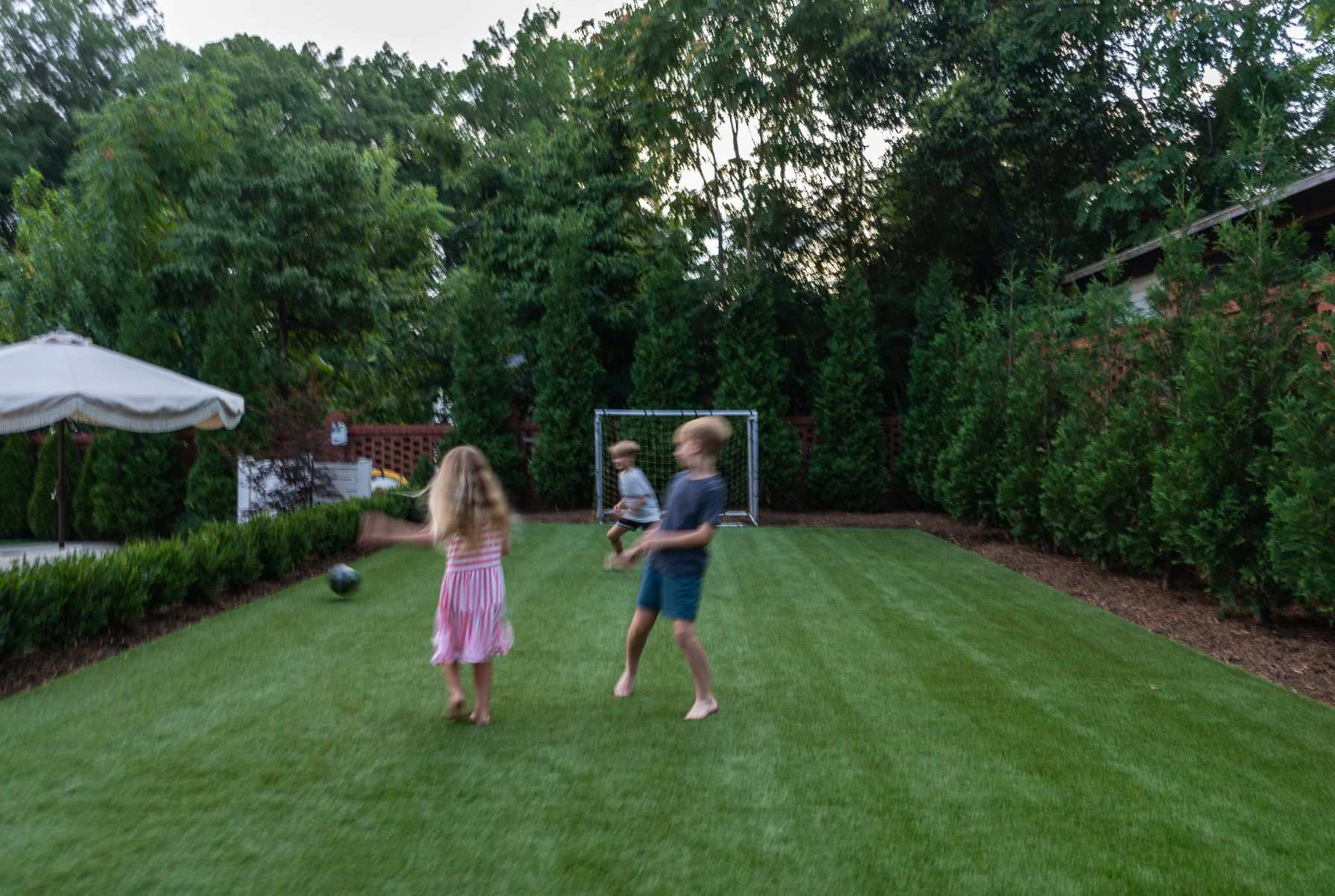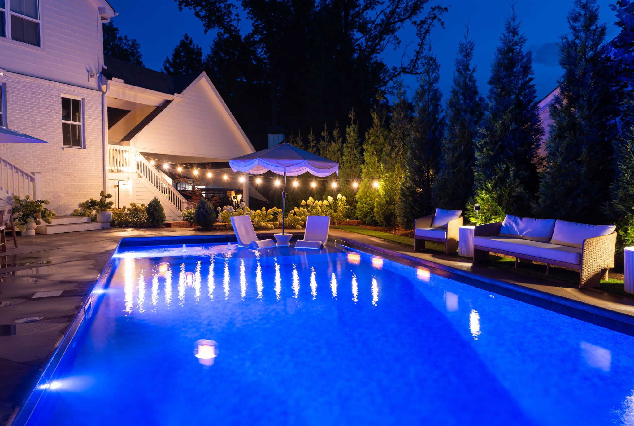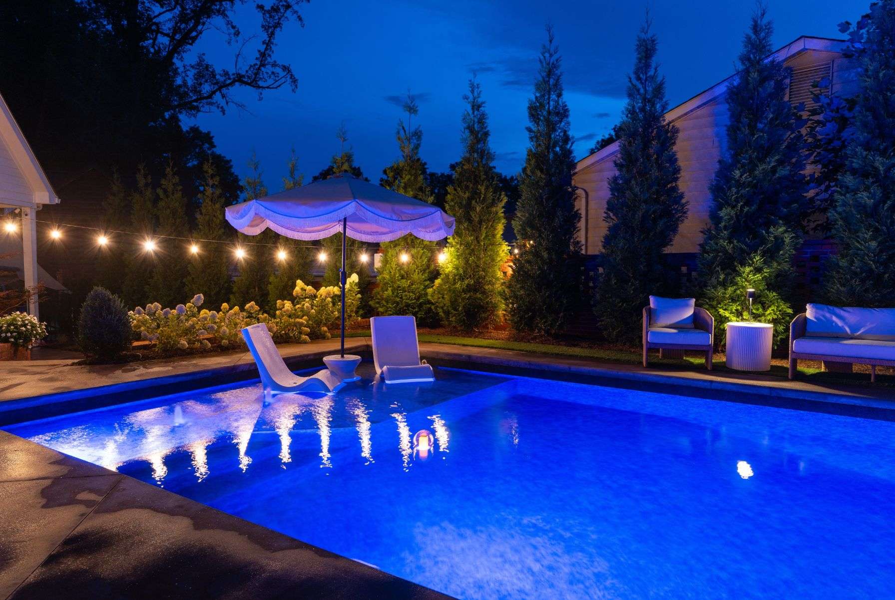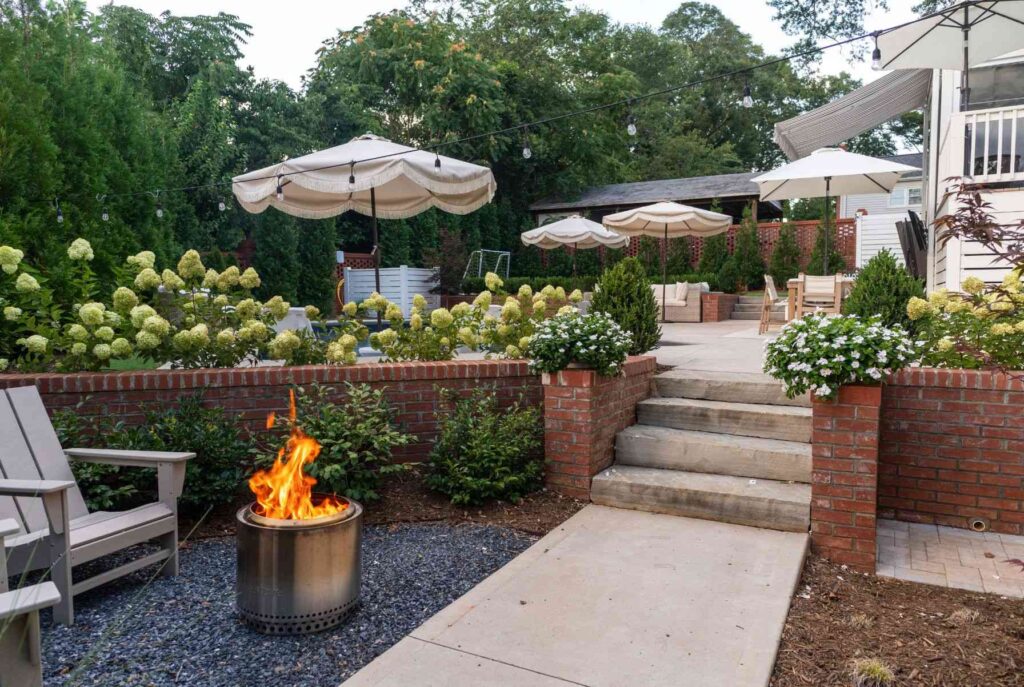 Residential Backyard with Pool, Firepit, and Versatile Outdoor Living