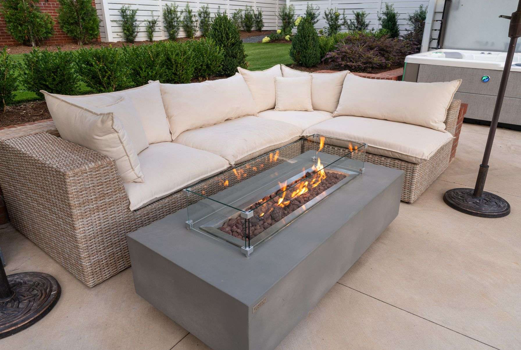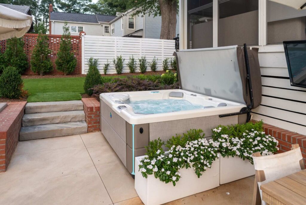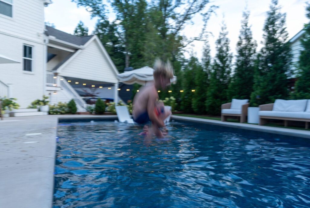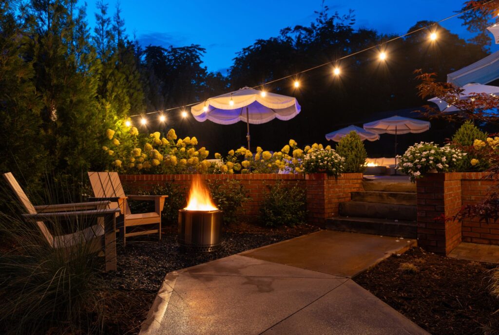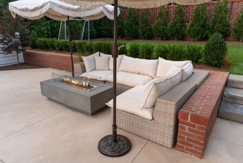 Residential Backyard with Pool, Firepit, and Versatile Outdoor Living